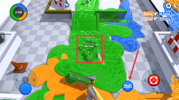 4、在自身的【绿色染色区域】,长按【蓝色波浪按钮】可以进行潜行,躲避敌人攻击。