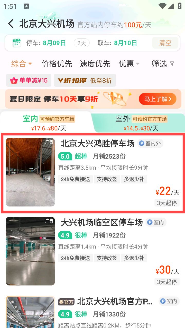 4.可根据成交量.价格.距离.评价等多维度选择停车场,货比三家
