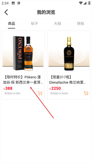 3、进入我的浏览页面,在商品列表中选择目标商品。
