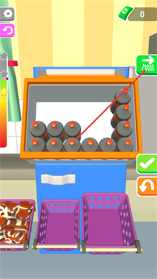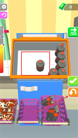 3、把所有瓶装物品整齐摆入冰箱后,点击【Next-Level】按钮进入下一关,继续挑战更复杂的整理任务。