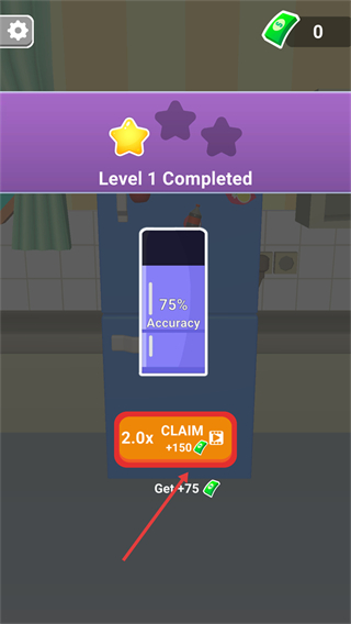 4、关卡完成后获得【75%-Accuracy】的准确率评分,点击【Get+75】领取奖励,可积累资源解锁后续内容。