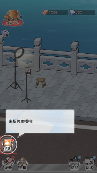 2、点击【招聘1次】免费获取主播,完成直播带货的初始人员配置。