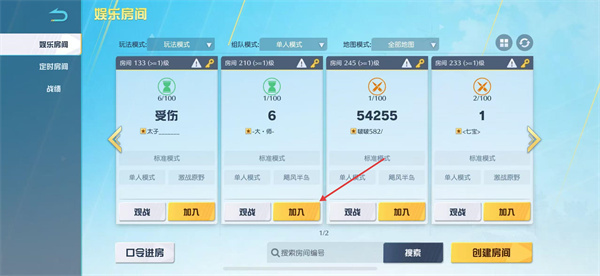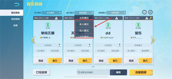 2、可筛选不同模式,根据需求筛选游戏房间。