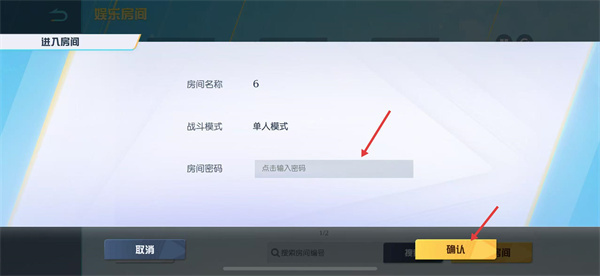 4、进入房间时,输入【房间密码】后点击【确认】,即可进入对应游戏房间。