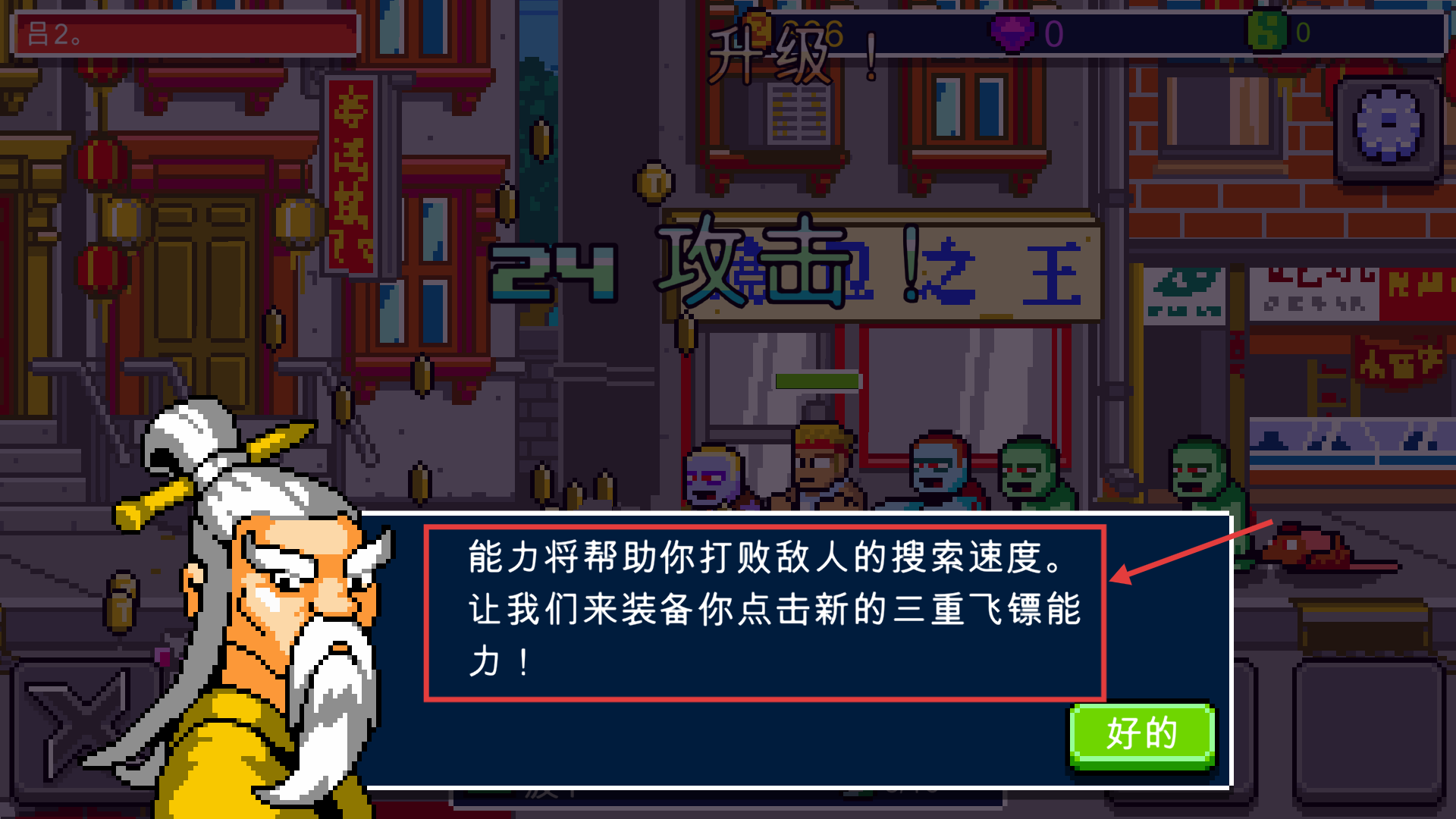 3、升级解锁回旋踢升龙拳等功夫技能,运用技能提升战斗效率,快速击溃大量敌人。