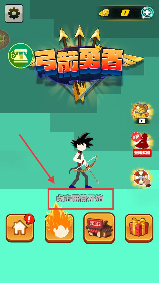 1、点击屏幕开始游戏,进入关卡后操控勇者,准备应对持【弓箭】的敌人攻击。