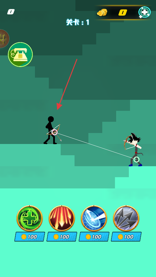 2、战斗时瞄准敌方【弓箭】手,预判移动轨迹,下方技能可花费【100】金币解锁增强战力。