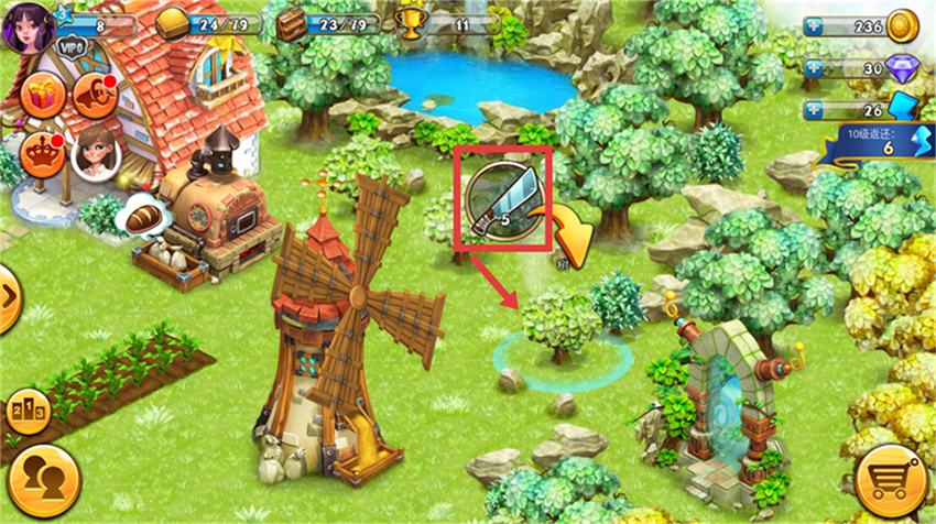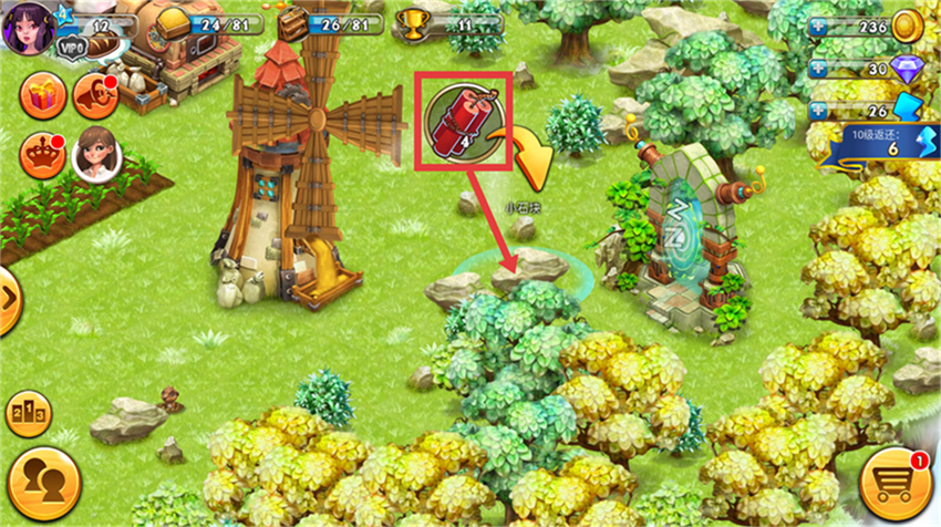 3、使用【炸药】清除小石块,开拓庄园土地,解锁更多创作区域,让庄园布局更具想象力哟。