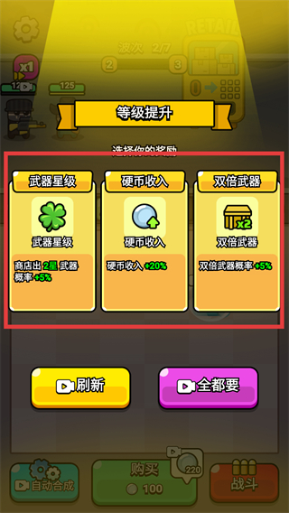 3、游戏开始前,选择红框内的奖励(如武器星级、硬币收入等)。