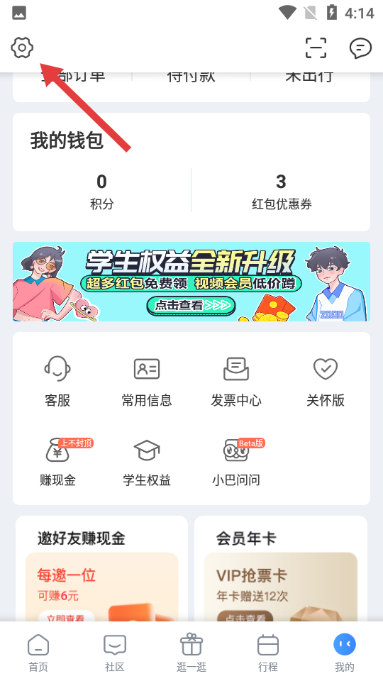2、进入个人页面后点击左上角设置图标。