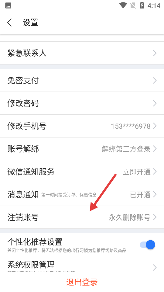 3、在设置界面点击【注销账号】,进入注销账户页面。