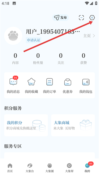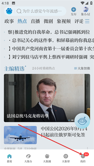 1、在大象新闻首页点击底部【我的】选项,进入个人功能操作区域。