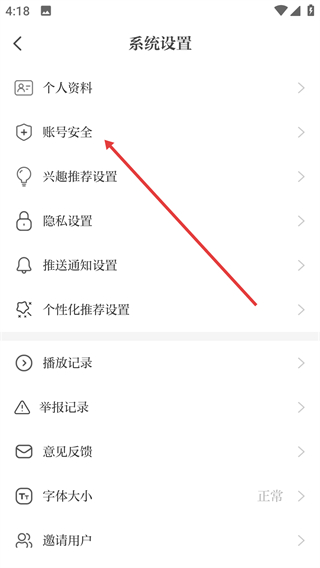 3、在系统设置页面找到【账号安全】选项并点击,进入账号安全管理界面。