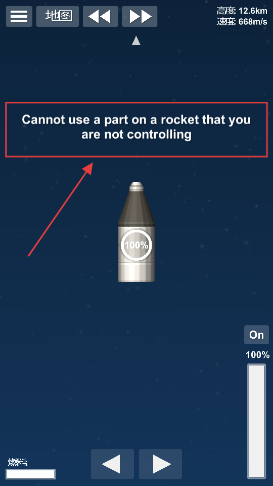 3、飞行中若出现【Cannotuseapartonarocketthatyouarenotcontrolling】提示,需确认当前是否控制火箭主体避免操作无效。