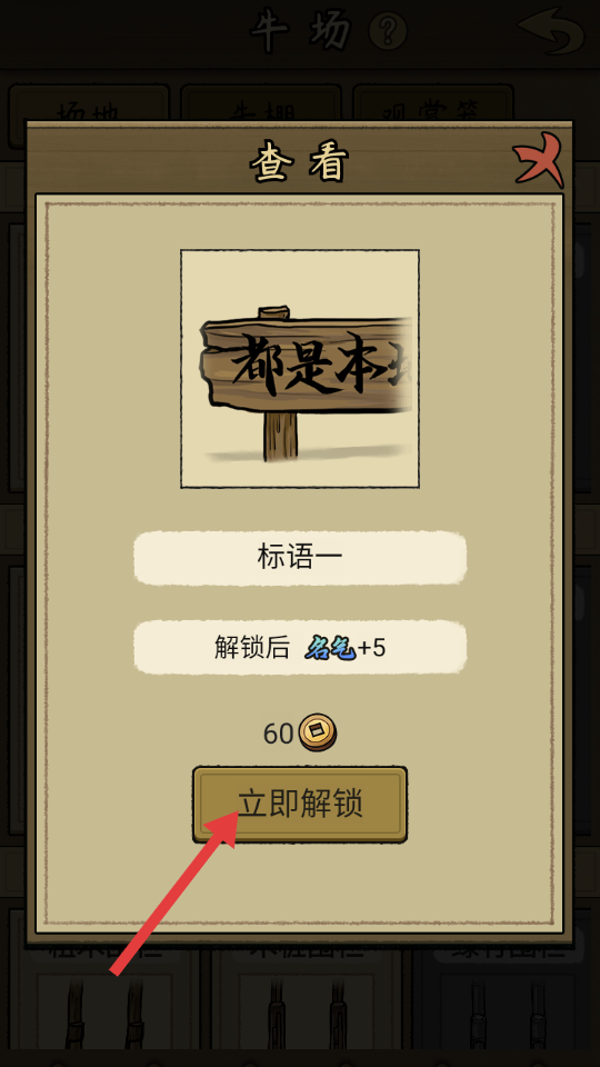 2、花费60金币立即解锁标语,解锁后名气提升,增强斗牛场的吸引力。
