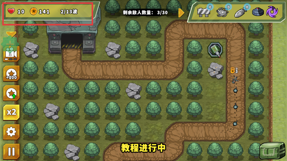 2、利用炮塔攻击敌人,消灭来犯之敌,减少剩余敌人数量,推进关卡进程。