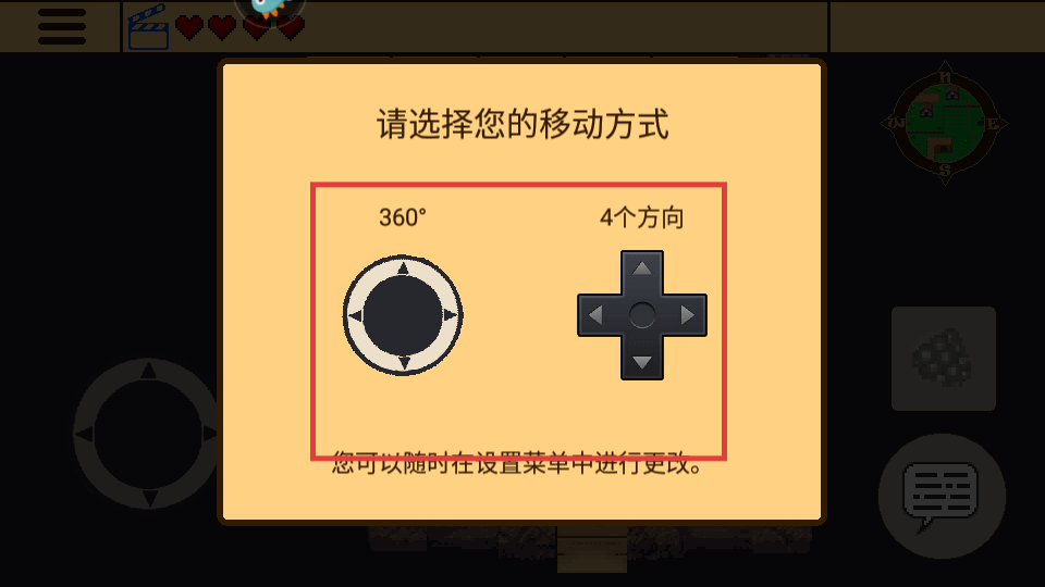 2、选择移动方式,如【4个方向】的十字键,方便在游戏中控制角色移动。