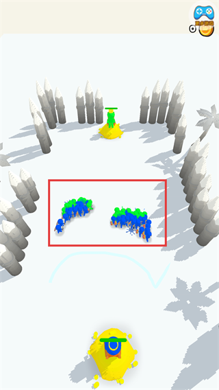 2、让蓝绿配色的火柴人队伍汇合,壮大群体规模,借助人数优势为后续对抗目标单位做准备。