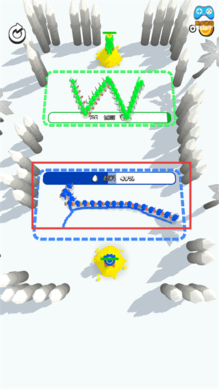 1、观察区域进度,操控蓝队火柴人沿路径移动,积累数量提升战力,同时留意上方绿色路径的布局。