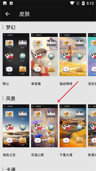 5、点击右上角可以切换声音,换成其他的乐器。