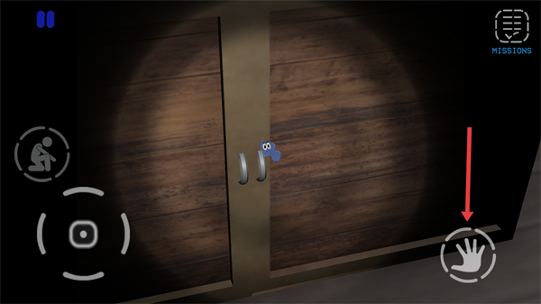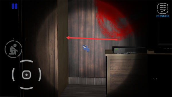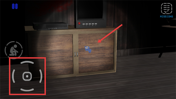 2、持续通过转动视角,看见柜子后,使用方框内【虚拟按键】操控角色移动至柜子前。