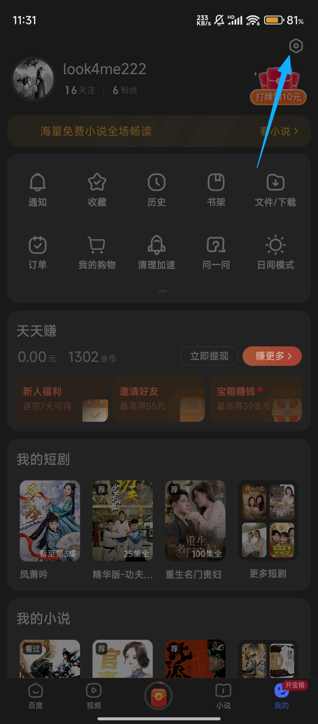 1、在【我的】页面中,点击右上角,进入设置界面开始操作哦。