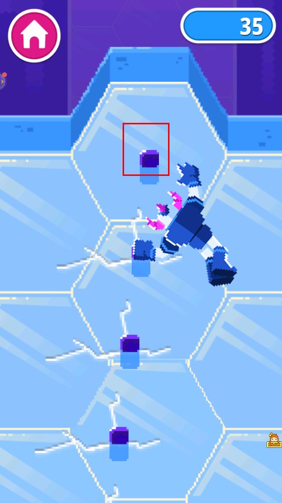 3、攀爬时,精准点击或滑动,让机器人抓取紫色方块,注意避开易碎区域。
