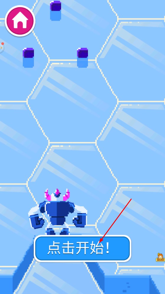 2、在关卡准备页,点击【点击开始!】,操控机器人开始攀爬,收集紫色方块。