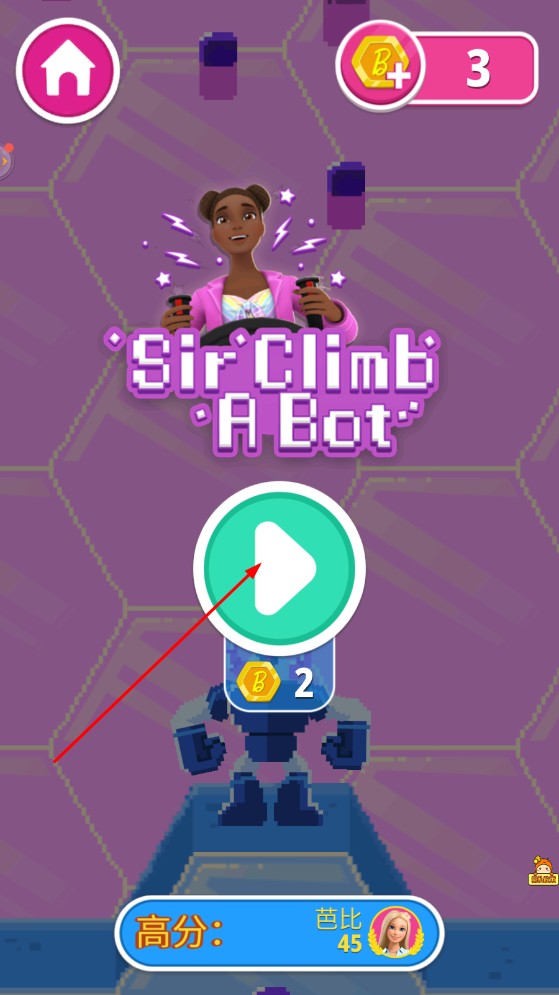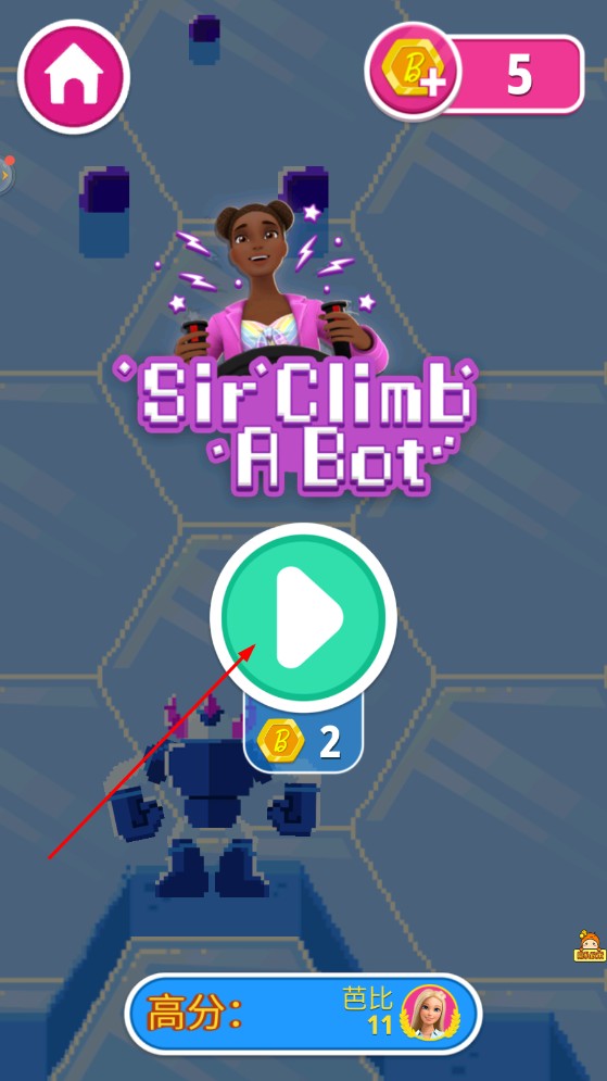 1、点击主界面绿色【开始】按钮,进入【Sir-Climb-A-Bot】游戏,开启攀爬挑战。