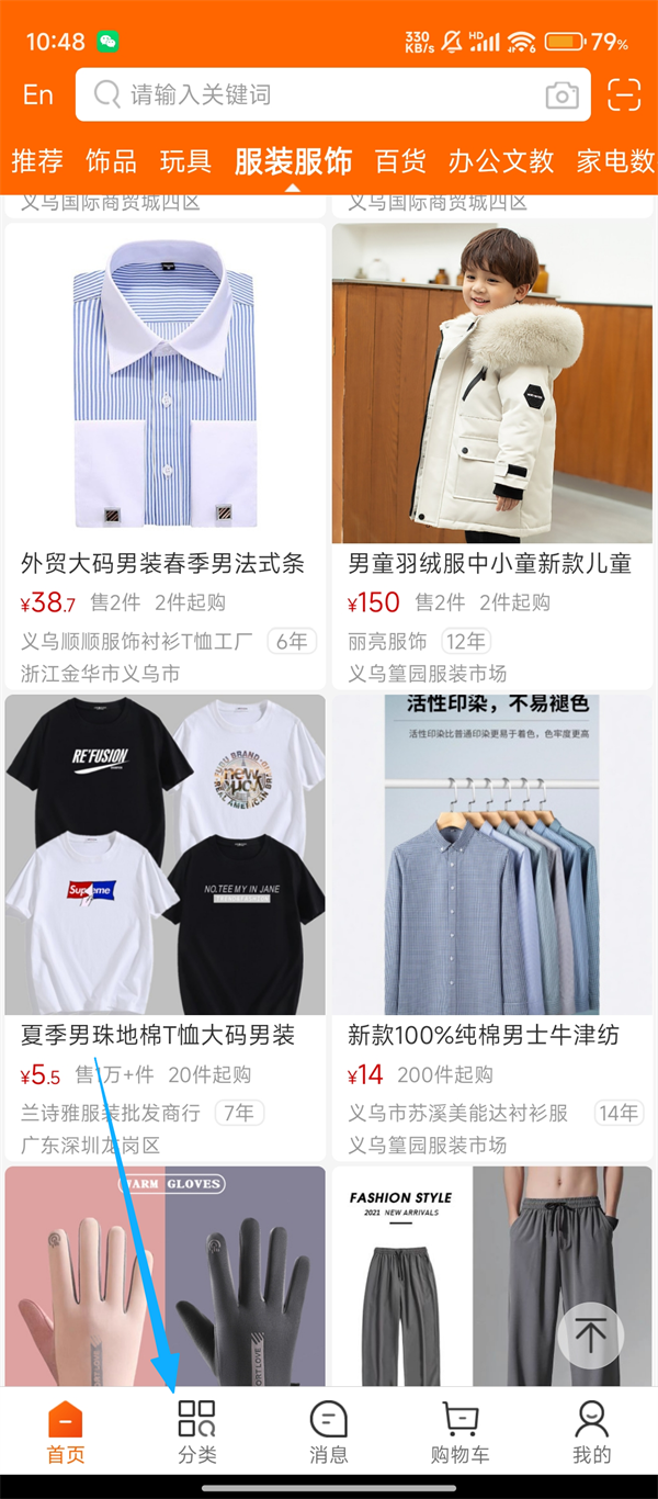 1、我们可以点击底部【分类】按钮,进入商品分类页面,快速找到想要采购的商品类别呢。