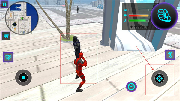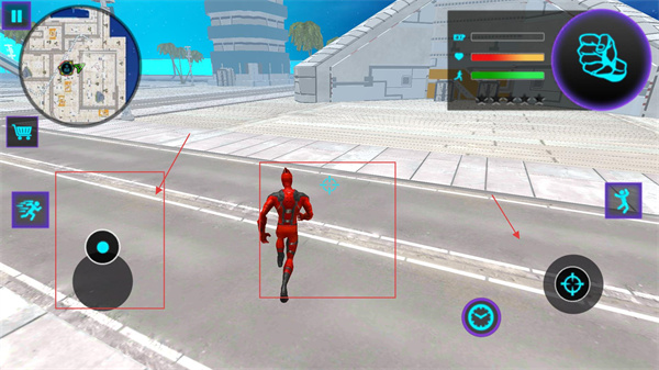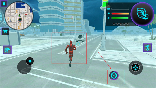 1、进入后通过左侧摇杆控制角色移动,结合地图指引前往任务目标点,利用角色的高机动性快速穿越城市道路。
