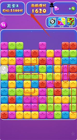 5、每个关卡都有不同的消除目标要求,灵活使用道具快速找到合适方块,提升分数获得更好成绩。