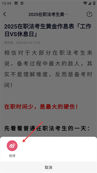 4、在弹出的分享选项中选择“微博”,即可完成分享。