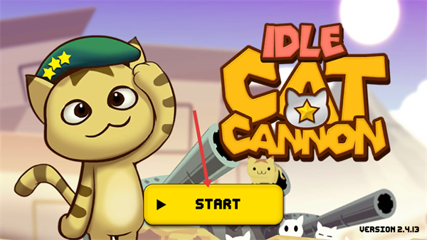 1、主界面点击【START】进入游戏,通过部署猫咪加农炮抵御敌方车辆,积累分数与资源。