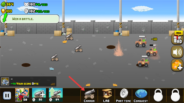2、对局中点击下方【CANNON】按钮,部署加农炮攻击敌方目标。