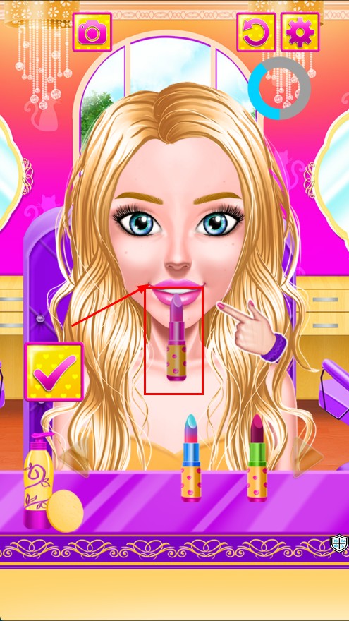 3、使用化妆工具(如粉扑),为角色上妆,打造精致妆容。