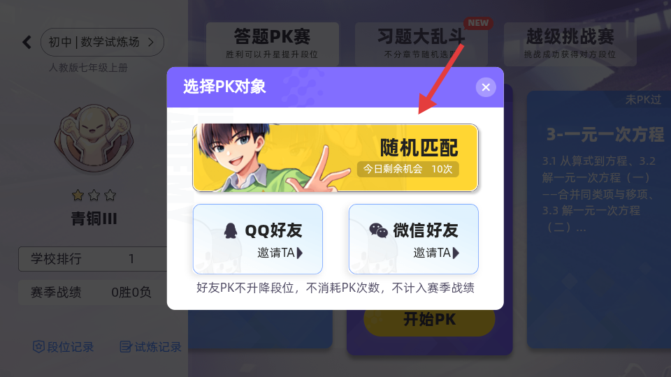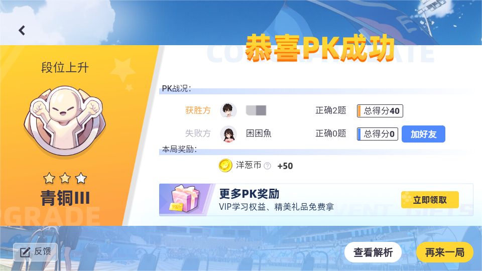 4、PK结束后查看结果,获胜可提升段位、获得洋葱币奖励。
