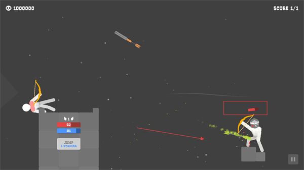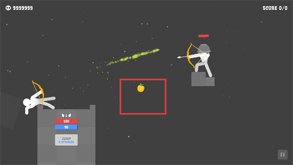 2、瞄准敌方弓箭手的生命值条,精准射击降低其生命值,同时躲避敌方的箭矢攻击,保持自身生存。