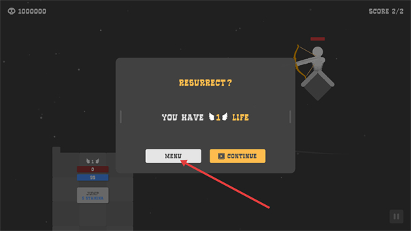 4、若战斗失败,可选择【MENU】返回主菜单,合理利用生命值资源,提升游戏的通关率和分数积累。