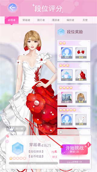 1、参与“段位挑战”,获取段位排名和金币奖励,不断提升自身穿搭水平和游戏段位,成为时尚穿搭达人。