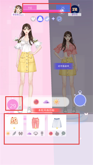 4、持续优化穿搭组合,尝试不同风格的服饰搭配,进一步拉开与对手的风格值差距(如110vs25),确保竞技胜利。