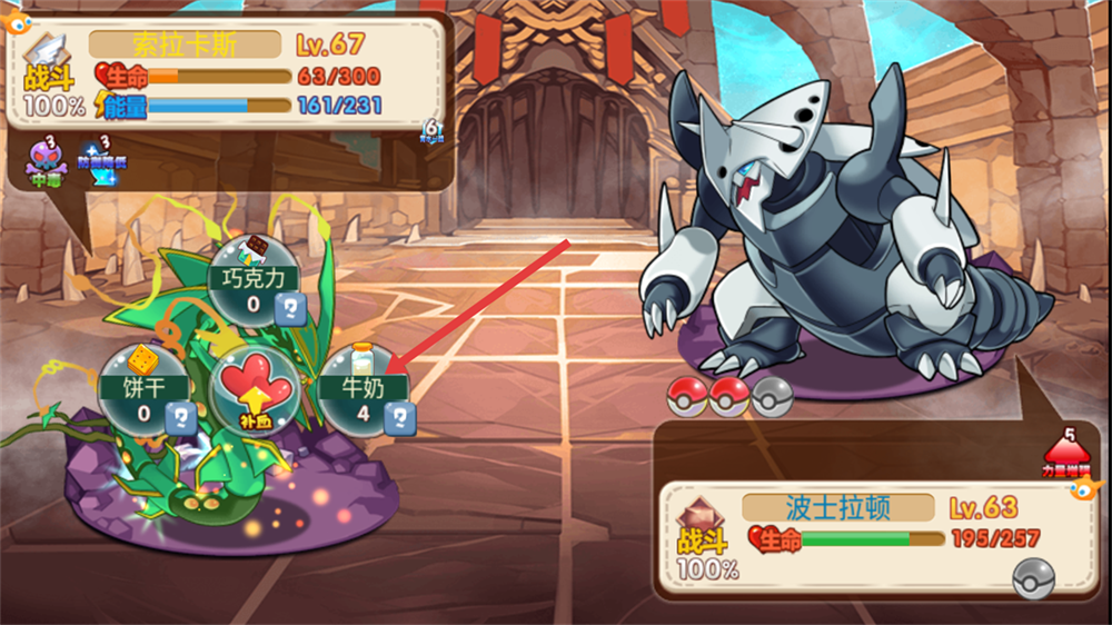 2、点击使用【牛奶】道具,为宠物补充生命,提升续航,助力战斗续航哦。