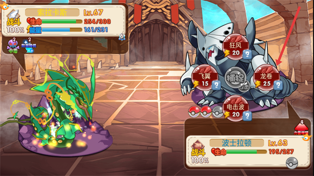 3、面对敌人时,选择【龙卷】技能发起攻击,利用其高伤害特性,高效削减敌方生命啦。