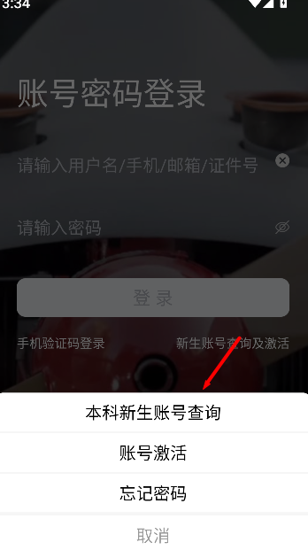 2、在功能页面中再次选择“本科新生账号查询”,进入查询界面。