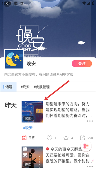2、我们可以在【晚安】分类下,查看【#晚安】话题内容,点击进入详情呀。