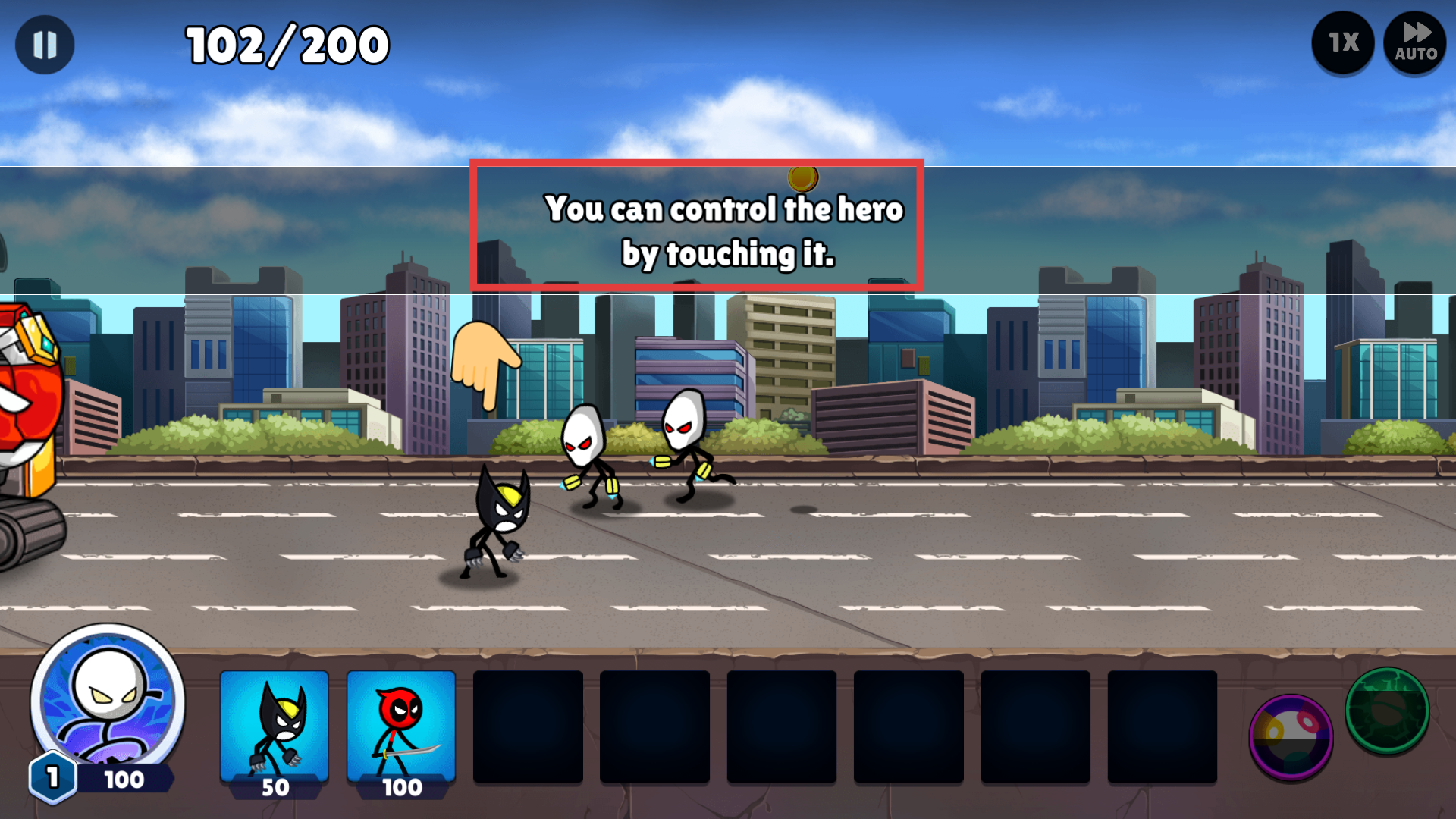 3、战斗时触摸英雄可手动控制其移动,灵活调整位置应对敌人的进攻。