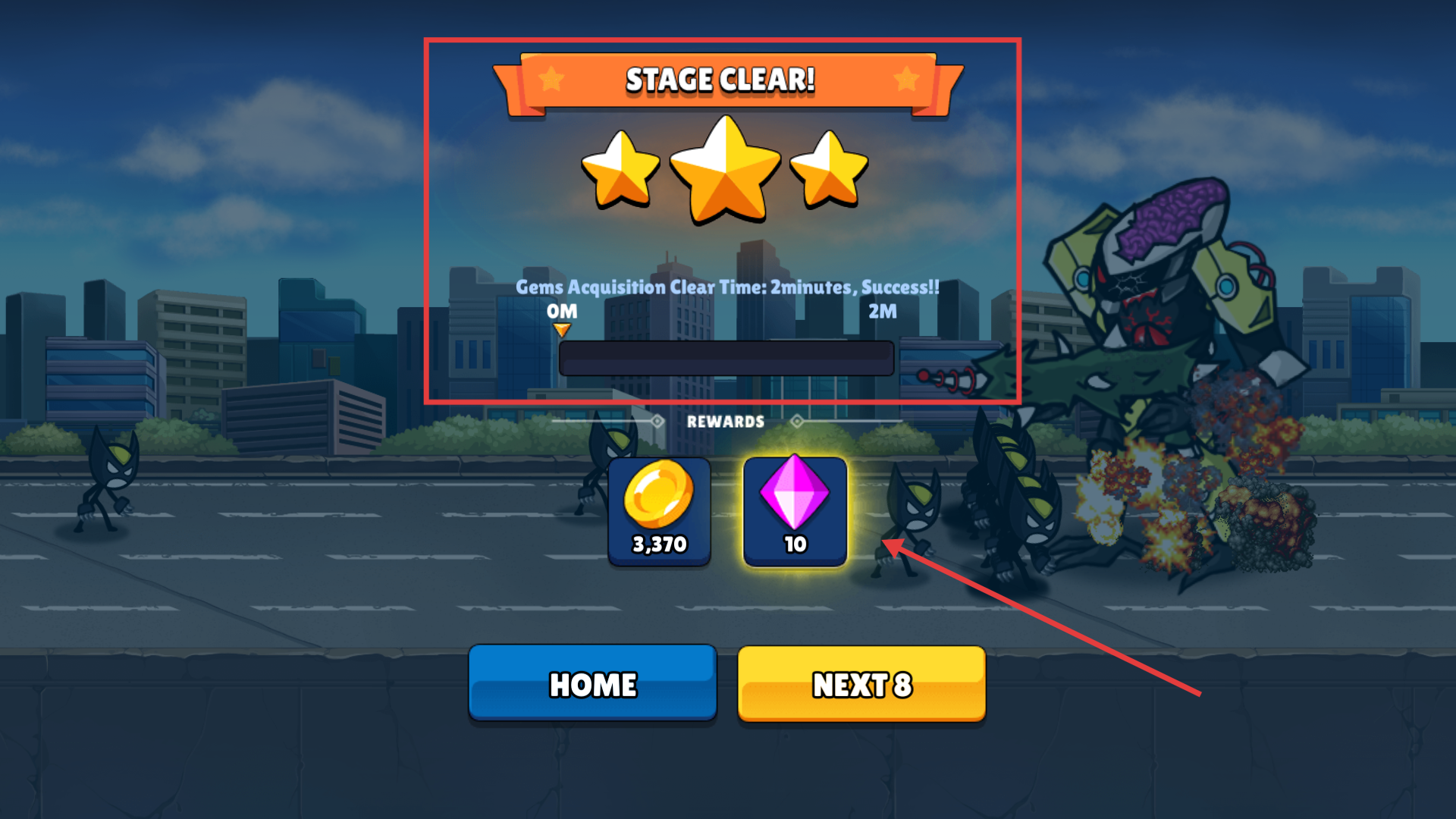 4、通关后获得三星评价与金币、宝石奖励,点击【NEXT】按钮继续挑战下一关。