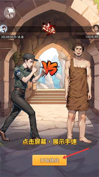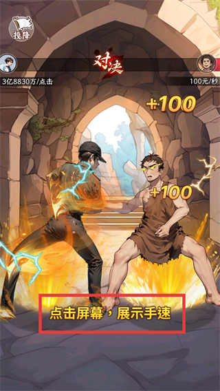3、对战中持续点击红框区域,每次点击可获得【+100】进度,快速压制对手,推进通关流程。