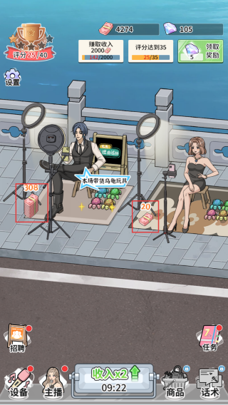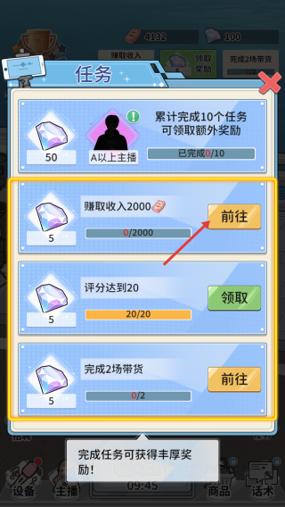 3、点击收集主播直播的收益,获取对应的数值,积累收益和评分。
