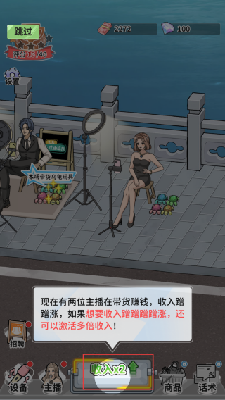 1、点击【收入×2】激活多倍收入,借助主播带货,提升当前收益增长速度。